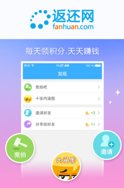 1.返还——淘宝天京东唯品会美团等+800家知名商城合作,购物返利随时随地,返利最高50% 2.值得买——每日推荐热门历史最低价折扣信息,最靠谱网购推荐尽在这里 3.发现——看趣图、领积分、齐分享,剁手党购物以外,更多精彩等你来发现
