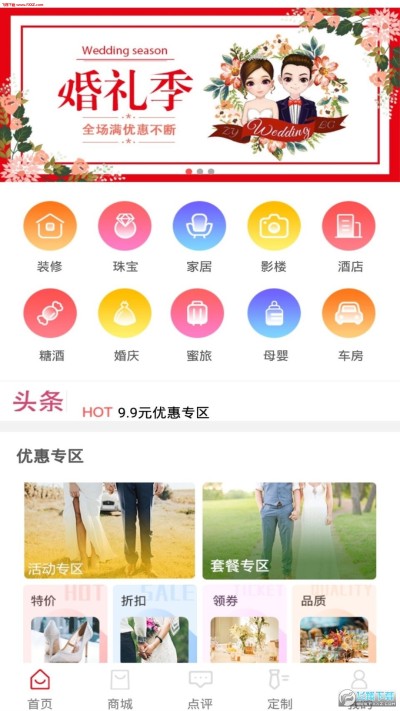 最实用导购:为你精心挑选各种风格的商品,帮你省去大浪淘沙的时间,轻松搞定婚礼周边的准备工作;还有品牌商家带来优惠风暴;