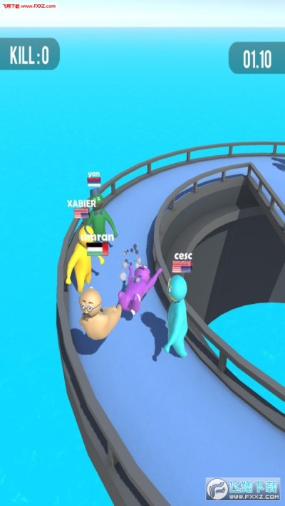 一款以物理玩法为主的联机大作战游戏,在游戏中所有的玩家将在同一个平台上战斗,一旦被扔出平台下就会失败,如果你连续被攻击就会晕倒,晕倒了就会被人扔出去,游戏的玩法非常清奇搞笑,玩起来欢乐无限,你也可以和好友一起并肩作战,团队配合玩起来更给力。