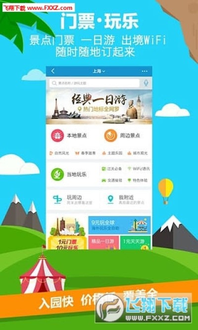 -提供国内各大城市旅游景点的当地游、租车服务,以及热门演出票和景点门票的查询、预订