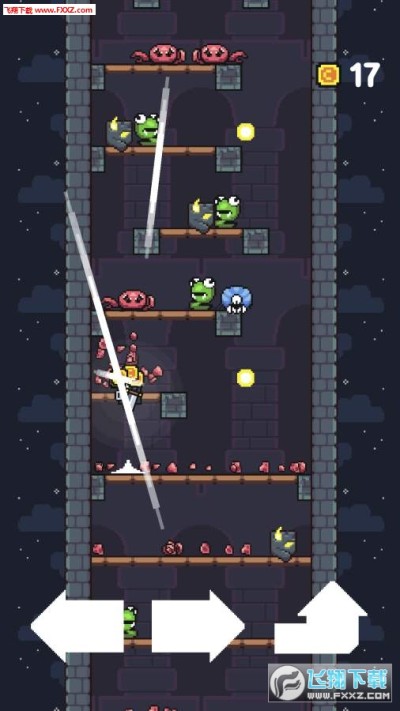 《跳跳骑士》是我最新的街机挑战。 平台游戏带来了一种难以掌握的全新游戏机制,但只需使用这三个按钮即可完成。