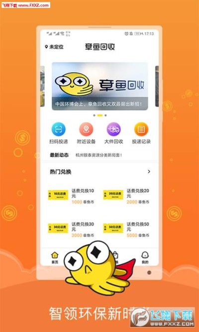 【扫码投递】用章鱼回收APP扫描智能回收柜上二维码,分类投放可回收资源;