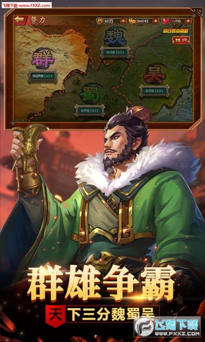 黄巾乱群雄起,天下三分英雄辈出,无双吕布,忠义关羽,虎胆赵云等历史名将,逐一招募麾下,成就千古霸业