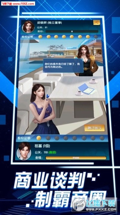 总裁传奇是一款模拟经营类型的游戏,在游戏中模拟了一个商业帝国,里面有你需要的一切,经营模式简单自由,想成为这个世界的首富吗?下载总裁传奇,不同的美女npc为你打工,福利多多哦!