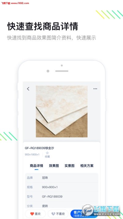快绘,让销售更得更简单。一台手机或平板就可以实现选砖、看图、传图、找方案、设计出图,还可以记录客户喜好。通过软件让销售人员快速找到店铺商品、商品相关效果图和设计方案,并记录客户的行为来帮助终端门店提高业绩。是一款销售利器。