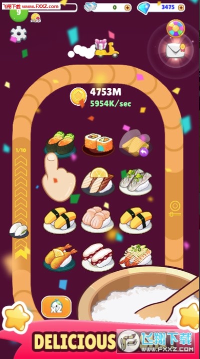 Sushi Bravo安卓版》是一款卡通风格的模拟经营手游游戏里玩家可以体验寿司的制作过程,不断融合两个相同的寿司解锁更多的新品,通过放置赚取金钱打造最好的寿司店,快来下载试试吧!
