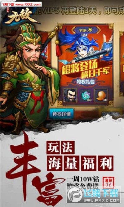 以三国历史为主要背景,82名三国著名武将,任君选择。游戏内丰富的武将培养模式,觉醒、进阶层层突破,神装、宝石辅助加成,所有武将之间还有特殊的情缘属性,同一个天下,总存在一些千丝万缕的关联,有墙裂的历史代入感。