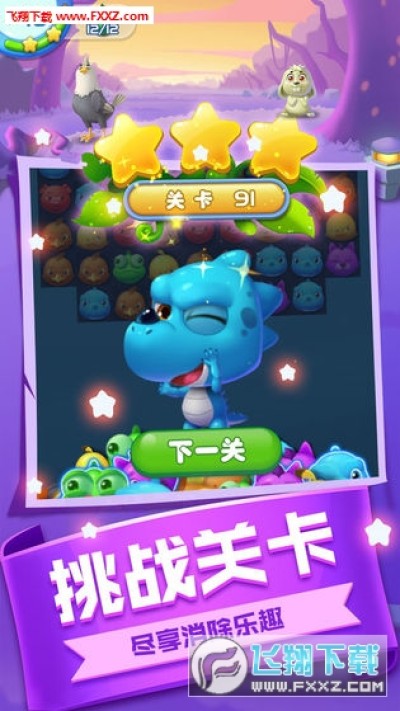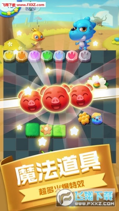 《风来风去之爱消除》是动漫电影《风来风去》同名定制消除类游戏,画面精美,上手简单,休闲有趣,海量精彩的关卡设计,多种强力的魔法道具,满屏炫目的技能特效,配上唯美可爱的游戏画风和超萌超可爱的恐龙及小动物形象,是您休闲娱乐,打发无聊时光的最佳选择。
