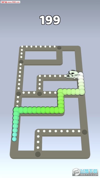 在每个关卡中一条小蛇通过不断的吃下游戏中的“豆豆”来扩展自己的身长直至挑战成功并获得相应的分数。