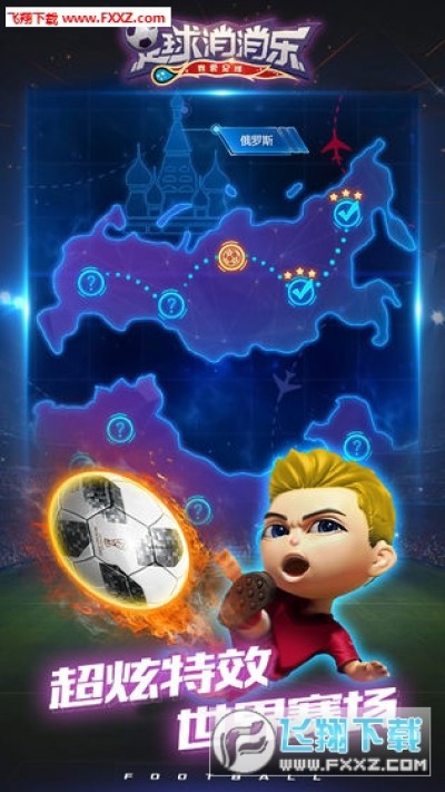 火爆的世界球场场景,明晰的面板设计,华丽爽快的特效效果,还有各国的国旗展示,定会陪您度过欢乐休闲时光。