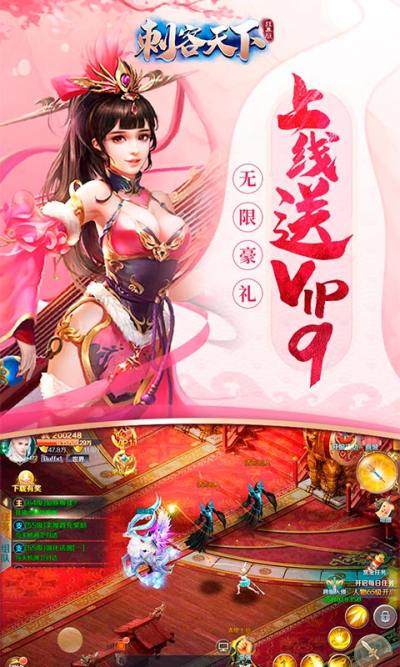 2、上线赠送vip9、绑定元宝50000、铜币300万