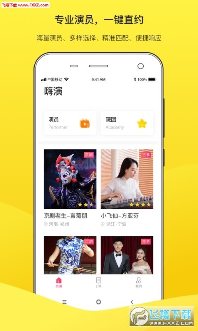 专业演员,一键直约。演缘平台通过全网大数据,让供需双方的匹配对接更加高效、精准。为演艺需求者提供一个私人定制、全程跟踪、极速对接、安全可靠的快速预约服务,为演员者打造一个专业的演艺文化、活动通告、演艺资源垂直无缝的对接平台。