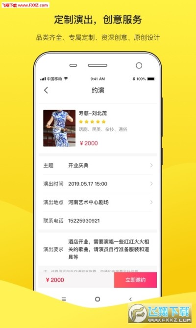 提供多品类个性化演艺服务,大数据精准匹配用户需求,一键式快速响应;