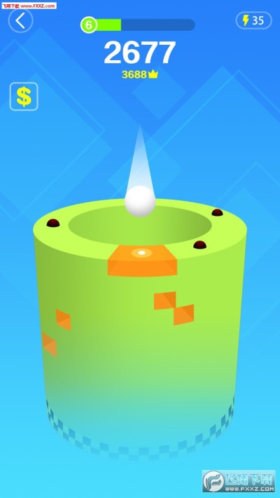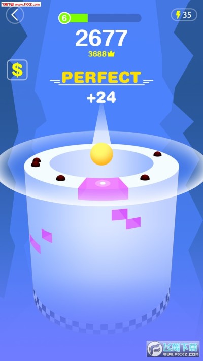 【游戏玩法】手指滑动屏幕,左右旋转柱子来让小球尽情旋转坠落,冲破障碍落,穿过层层障碍挑战高分极限!