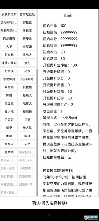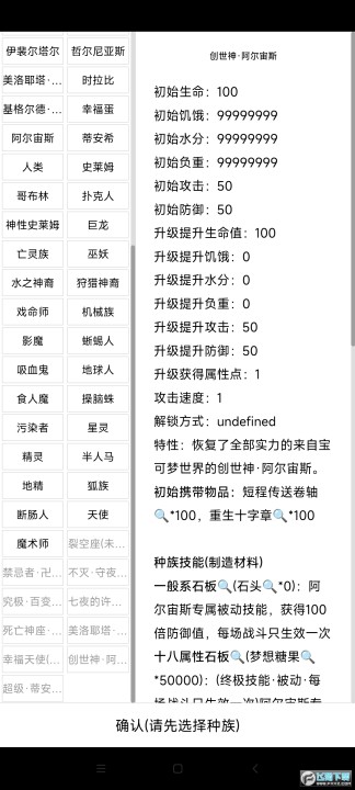 这是一个集生存RPG为一体的单机纯文字游戏,包含57多个种族,每个种族基本都有独特的玩法,因为不够独特的种族玩家投稿了我都不肯做。同时设置有5个难度,因为本游戏本质上很硬核,所以有给不喜欢太硬核的玩家玩的难度,也有喜欢追求更硬核的玩家玩的难度。和大多数最低难度可玩性不高的游戏不同的是,哪怕是最低难度,对可玩性也没有太多影响,只是简单了一些,不至于太劝退。是的,本游戏从第三个难度开始,超级劝退不喜欢硬核的萌新。不过也不用觉得玩低难度有什么问题,实际上应该至少70%的玩家是只玩最低难度的。由此再次可以看出硬核程度了吧。