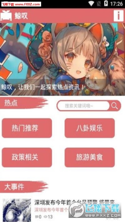 鲸叹是一款优质的新闻资讯软件,在软件中具有实时的热点以及各种娱乐新闻,大家可以随时随地打开查看,并且每日会自动推送最新的热点,帮助你轻松掌握天下大事。
