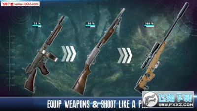 1、真正的3D猎人游戏,最好的武器和工具,凉爽的景观环境,光照贴图和阴影。