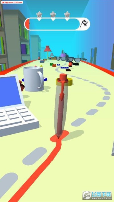 帮助笔到达终点线,避免凌乱的桌面上的障碍物,然后再运行墨水!