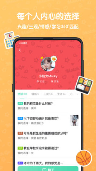 【问答匹配】为你一对一安排对象,你需要通过几道题的选择来尝试敲开对方的聊天之门,匹配成功后马上有得聊。