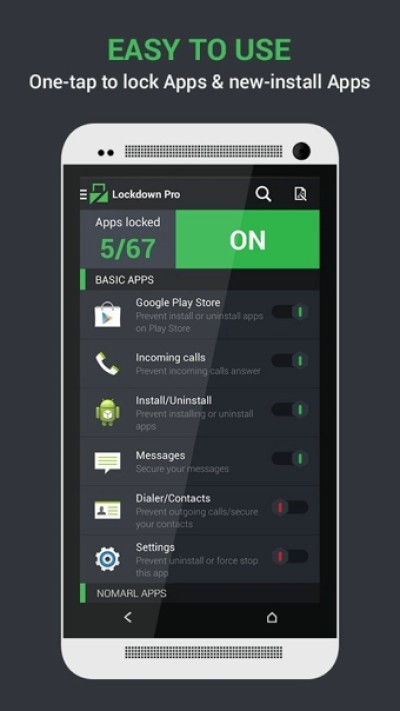 Lockdown Pro是一款应用保护工具,你可以将你想保护的文件或者应用等加上密码,避免手机在借给朋友玩时,或者给小孩玩耍的时候删掉或者进入系统设置,导致损失。也能避免在手机丢失后,别人用你的手机隐私给你造成的不便。同类的应用比较多,但像这款既免费界面有美观简单的,还比较少,推荐朋友们下载。