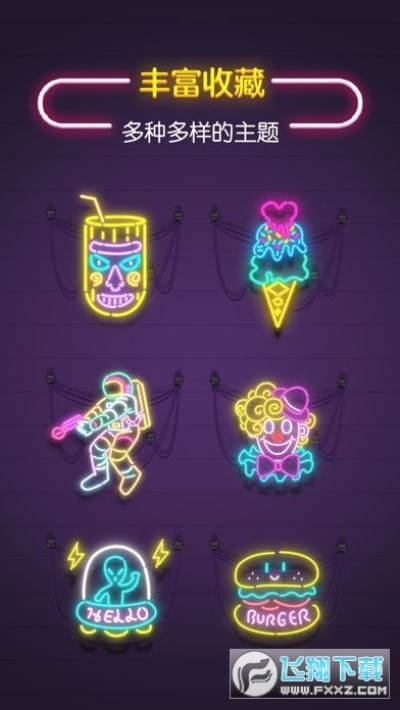 简单的旋转霓虹线条去找出完美的角度,拼出有趣的图形。全新的霓虹视觉效果,为你带来庞克风格的视觉体验。