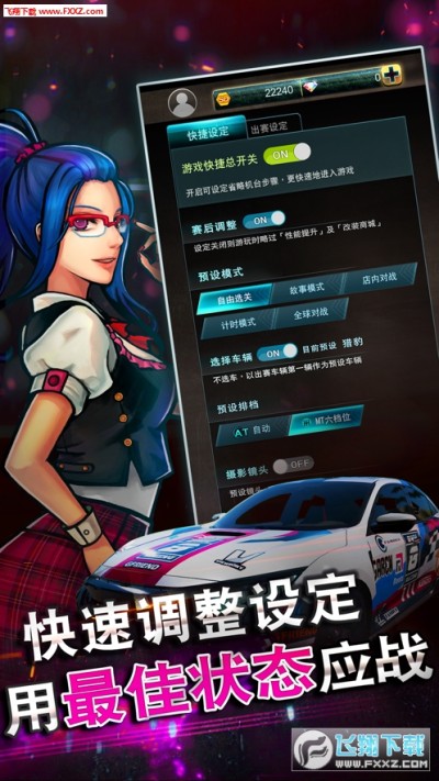 出赛车辆,排序,排档模式,氮气种类,动动手指,快速调整状态,马上应战!