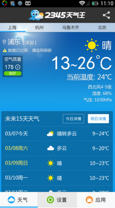 2345天气预报是目前国内最准的天气预报服务提供商,提供国内2000多个城市未来7到15天天气预报服务,同时提供空气质量指数、实时温度和生活指数等信息,为您生活和出行带来前所未有的便利。