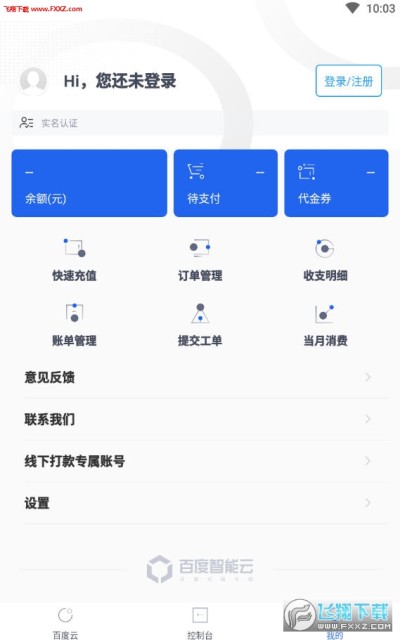 【首页控制台】 可查看帐户、报警、工单、即将过期产品;还可查看八大主要产品的开通与否和运行状态。