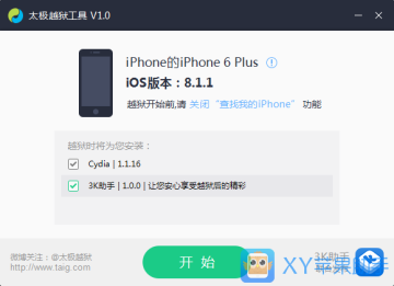 继盘古发布ios8.1完美越狱发布之后,国内团队“太极越狱”也于11/29发布了iOS8.1.1完美越狱工具。目前太极越狱已支持所有升级到iOS8.1.1的设备,并集成了cydia。XY苹果助手特为大家推出iOS8.1.1完美越狱图文教程,等不及尝鲜的小伙伴们,快按照XY苹果助手的教程操作吧!
