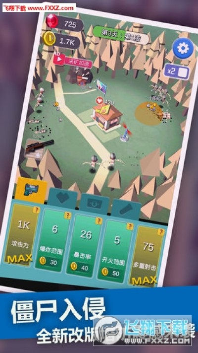升级武器,研究新技术,疯狂扫射,体验割草僵尸的炸裂快感!!