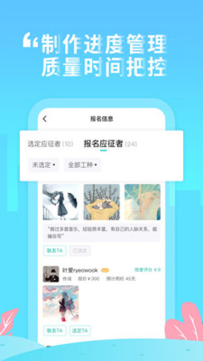 音乐人主动报名、系统推荐,详细沟通
