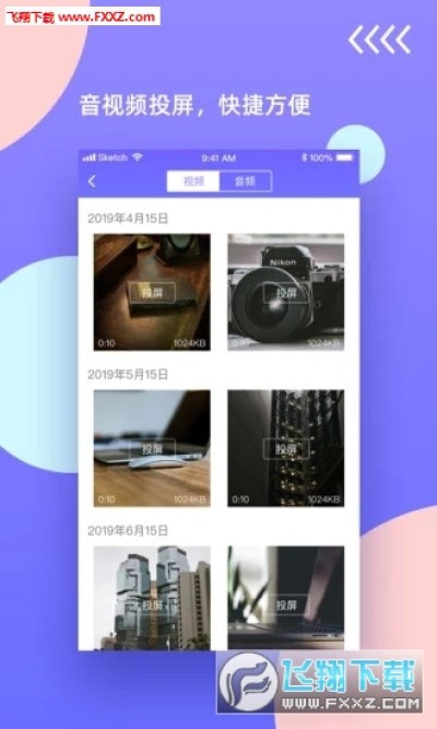 可以选择设备本地的音视频文件投屏到PC接收端界面上展示,安卓发送端可以远程调节PC接收端中播放音视频文件的声音大小、进度、暂停和播放。