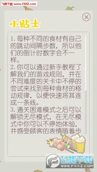 食材越多,串成烤串的难度越大,你需要至少串成一串,才能解锁下一难度关卡。