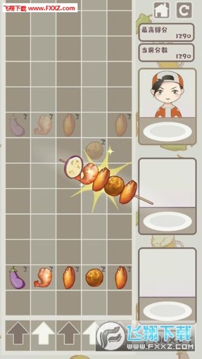 在烤串里,每个食材都有自己的跳动间隔步数,你需要观察不同食材的剩余步数,不断地进行尝试将它们放到一条线上串起来。