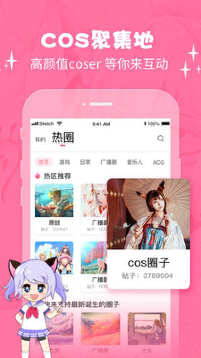cosama是一款针对二次元用户的社区互动产品,提供一个以cosplay为主,通过图文、录音等形式发帖的二次元兴趣爱好交流平台(颜值、声控、兴趣社交),此外,用户还可自创专属兴趣天地,呼朋引伴组织自己的“朋友圈”。