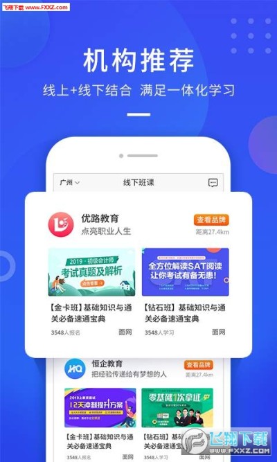 线下班课:云学优课与全国广大知名培训机构均有合作,只要你打开手机定位,当地的机构的简介、师资、课程、教学地址、机构动态让你一目了然。课比三家,学的放心!