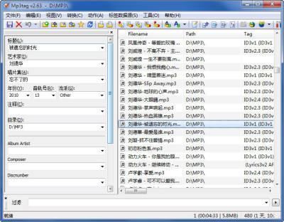 同时在多个文件中的编写和修改批处理 ID3v1.1,ID3v2.3,ID3v2.4,itunes的MP4,WMA,Vorbis注释和APEv2标签。