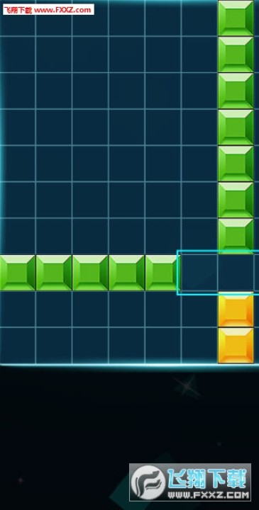 •拖动模式:将屏幕下方的三个备选方块拖入宫格中,一行或一列铺满即可消除,直至备选方块无法放置,则消除游戏结束