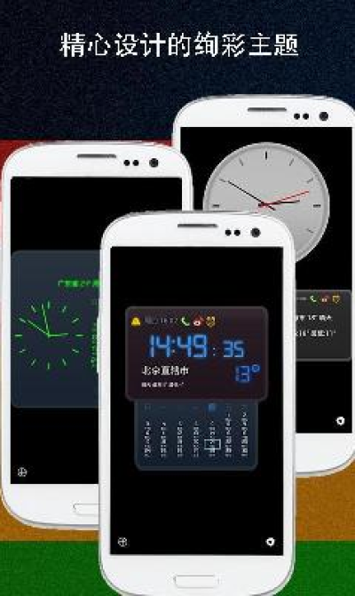 - 四种显示效果: 标准效果,LCD效果,石英钟效果和电子表效果,四种效果都具有镜面透明效果以及艺术字体.同时LCD效果和电子表效果还可以设置7种颜色
