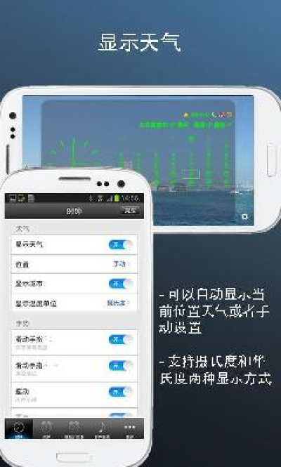 - 自动显示天气预报:会根据您设定的时间自动更新天气数据,显示当前的当前温度,最高温,最底温,并支持摄氏度和华氏度两种计量单位.