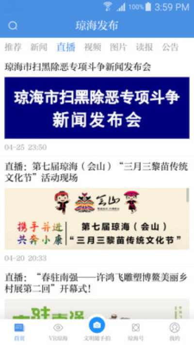 琼海发布客户端是由中共琼海市委宣传部牵头打造的一款集广播、电视、报刊、Vlog、图集、网络直播以及文明随手拍等多种功能于一体的移动端免费新闻阅读应用。