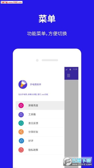 1 手机闪光灯手电筒照明,显示手机剩余电量,手机温度。智能照明、智能省电、亮度更高。