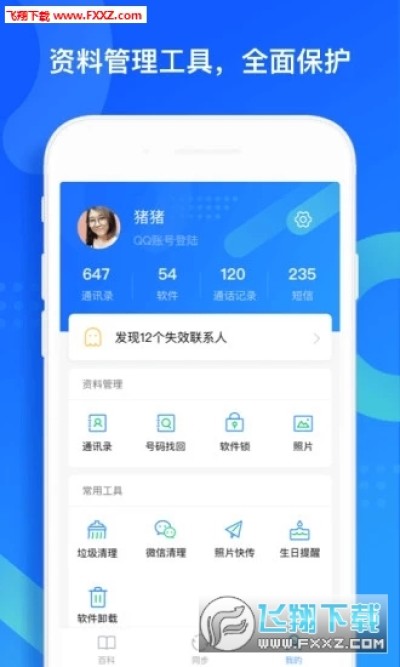 帐号保护:新手机用QQ号或微信账号同步资料,可以及时短信预警