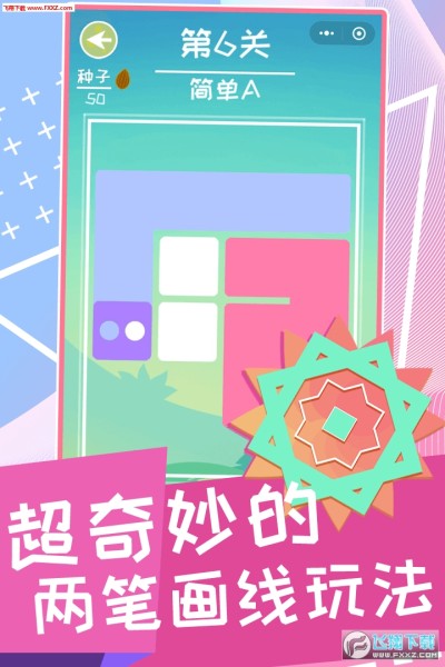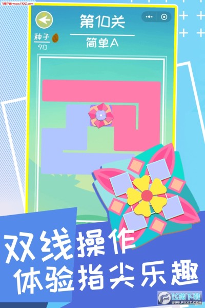 两笔开花是一款有意思的游戏,发挥你的大脑,玩家可以通过拖动2个方格画线,画出2条到终点,并且画满所有的格子,即可让花朵绽放。