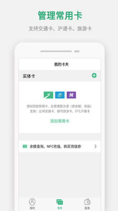 您的常用卡:可绑定您的常用卡片(支持交通卡、ETC沪通卡、旅游卡),方便您的管理。