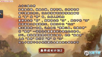 一款以古代帝王为题材的养成类游戏,模拟古代帝王生活,让玩家切身体验帝王的尊崇与烦恼。游戏具有极高的自由度,并且具有多种游戏模式,上千种游戏结局,每个人都能养成独一无二的皇帝。是寻找名妃,培养子女,或是发展国家,收录名臣;又或是秣兵历马,征战沙场,你的国家由你做主。在游戏中,玩家可以自定义自己的朝代,随心所欲的扮演各个朝代不同的天子治理自己的国家。雄霸天下,收录三国名将、水浒英雄!