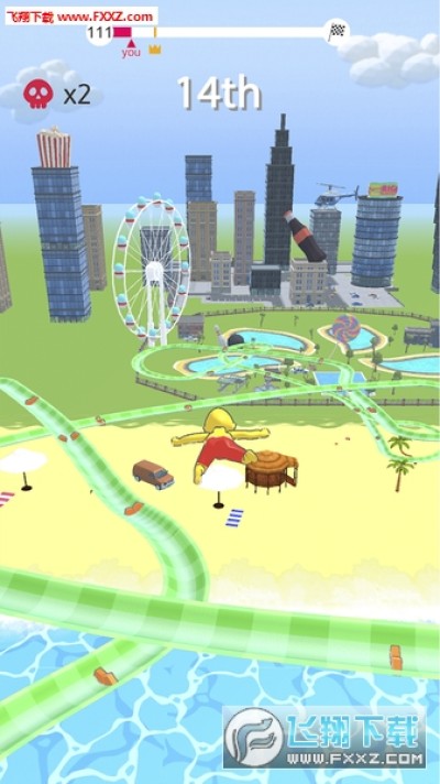 下滑过程中撞开其他玩家,飞出轨道走捷径!