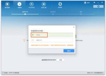 所以,如果您需要刷升级包或者相关补丁,可以在选好文件点击下一步进入如下图所示界面后,选择“升级包”