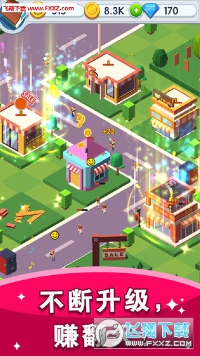 商业街手游是一款模拟类的游戏,清新的画风,简单的玩法,成为商业大亨,开发一块属于你的地皮,让这条gai成为最繁华的地段,有各种店铺可以建造升级,有各种可爱的方块任务,更多亮点等你来商业街手游发现哦。