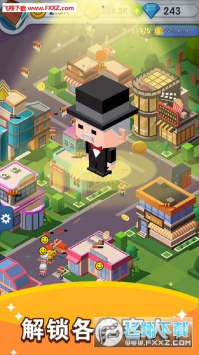 购买一块小地皮,建造你的第一间商店,将它扩张成大型商店,赚取更多的财富,然后投资新的店铺,去接待更多的顾客!